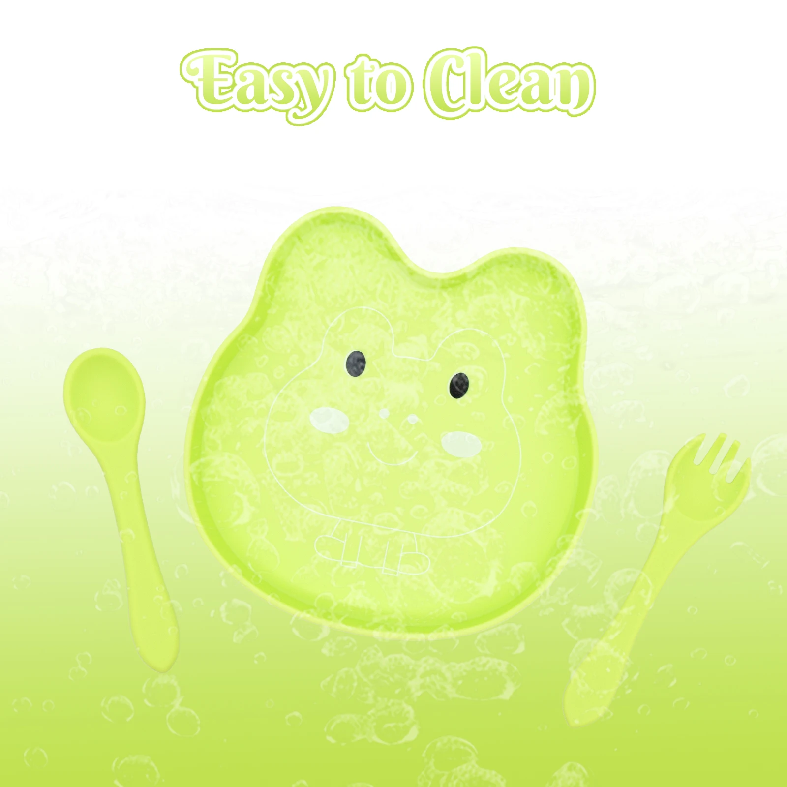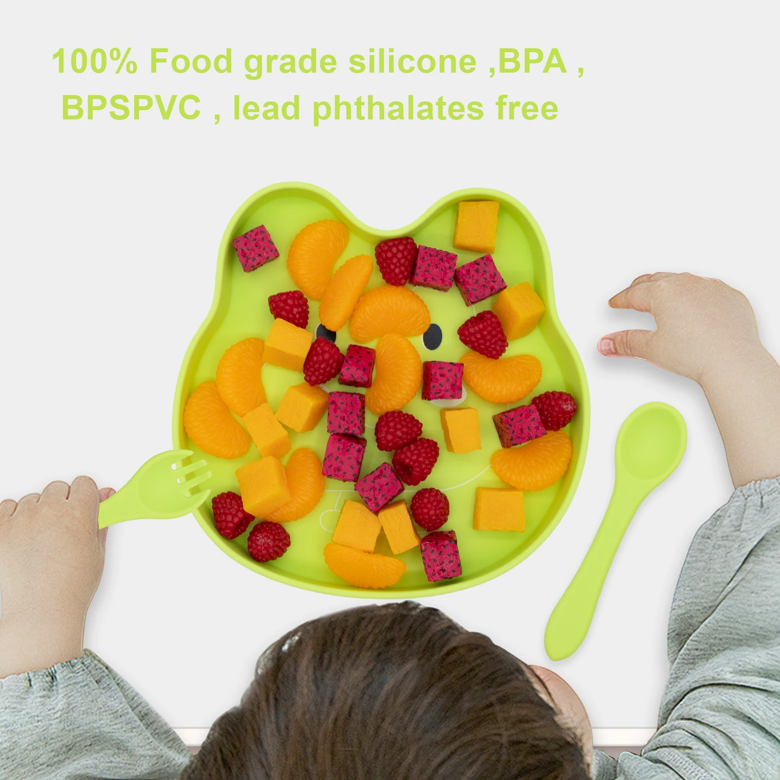 Quick Delivery, High Quality, Easy to Grip, Spill Proof Silicone Baby Feeding Set, Cartoon Food Tray, Spoon and Fork